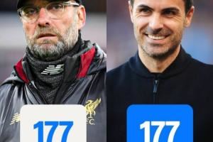 【相信过程】Amazon Prime Video Sport:阿尔特塔执教阿森纳前300场比赛的胜场数(177),与克洛普执教利物浦前300场时一模一样